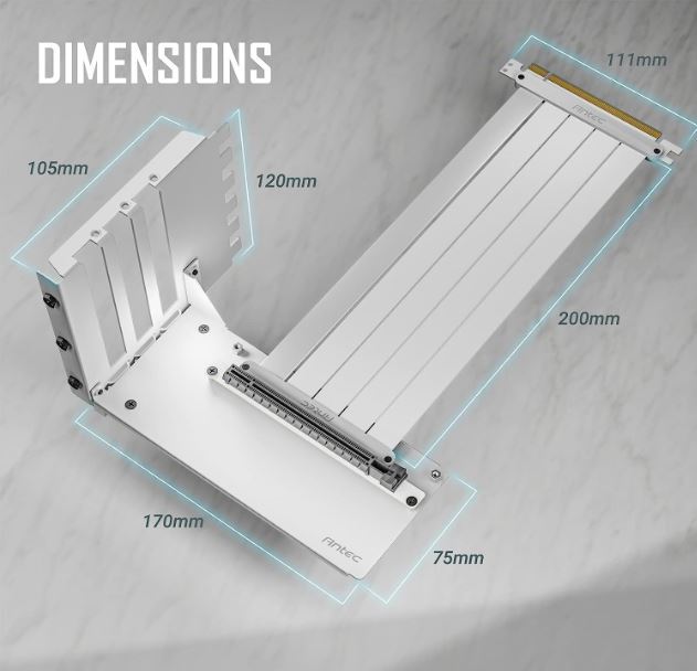 Antec PCIE-4.0 Riser Cable (200mm White) High Quality Gold Plated and Shielded PCB. Stability and Perforamnce 90 180 Degrees Flexible Cable Sleeves