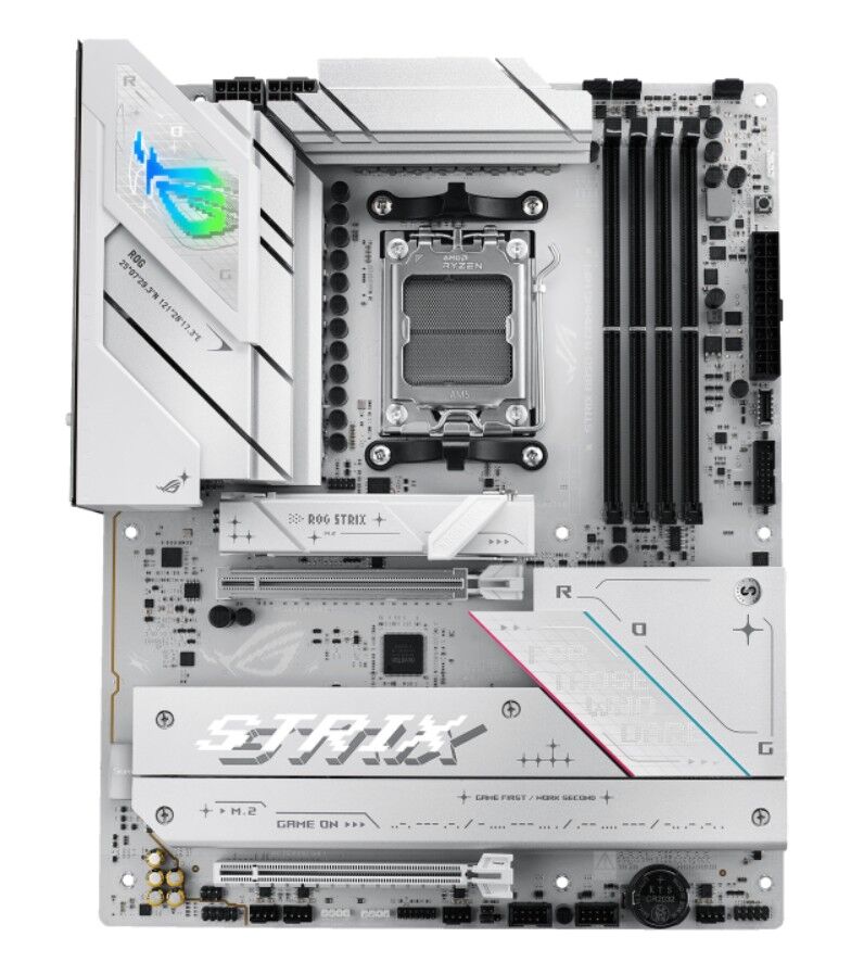Elevate your build with the ROG Strix B850-A Gaming WiFi. Featuring a sleek white PCB and support for AMD Ryzen„ 9000 Series processors, this motherboard delivers the power and connectivity needed for advanced AI applications. With DDR5 support, full PCIe 5.0 capabilities, USB 20Gbps port, and WiFi 7, it fts the ultimate blend of style and performance.