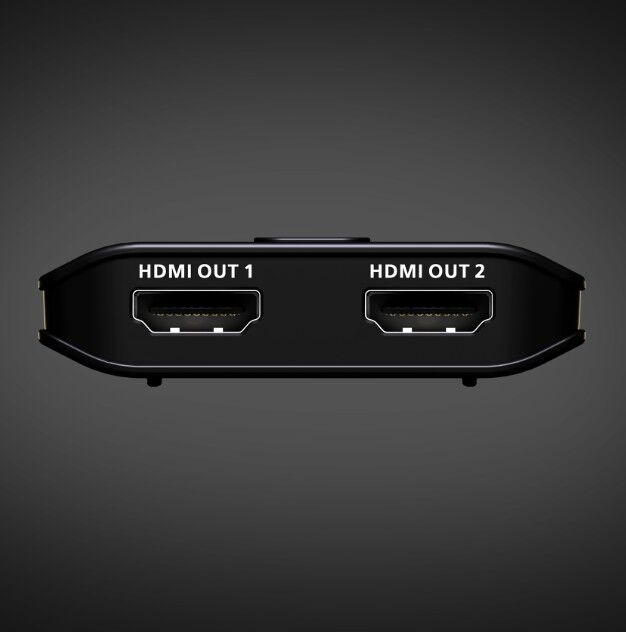 Shares one HDMI source across two displays, delivering simultaneous 8K 60Hz and 4K 120Hz visuals
