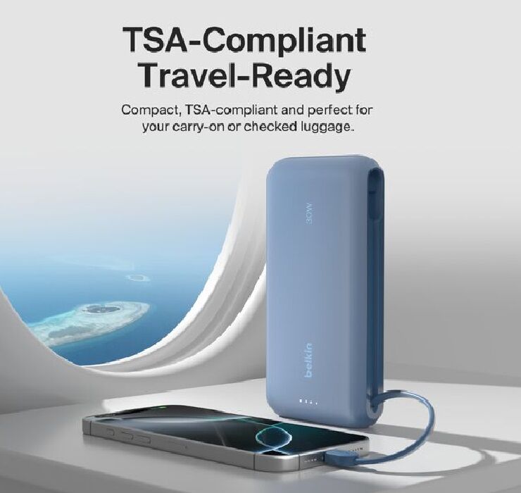 Belkin BoostCharge Power Bank 20K With Integrated Cable - Blue(BPB024fqBL),30W, 1xUSB-A, 2x USB-A,Integrated USB-C cable, CEW$ 2,500, 2 Years Warranty