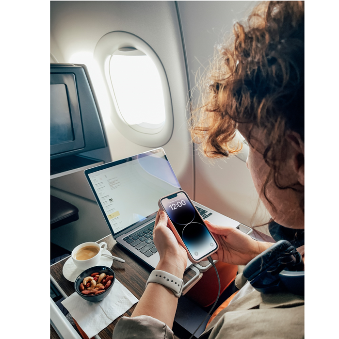 Allows for fast charging of an iPhone 14 from 0-50pct in 45 minutes
