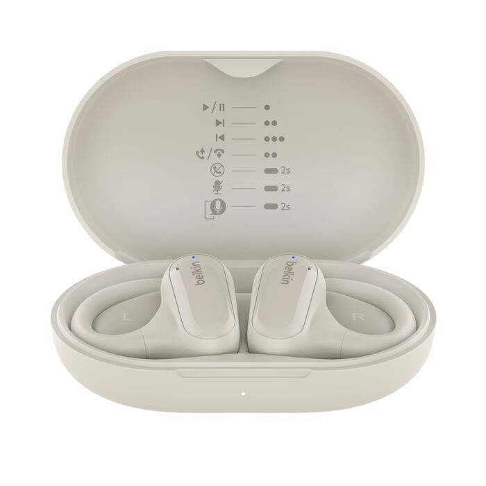 Belkin SoundForm ClearFit New Open-Ear Wireless Earbuds - White (AUC013btSA), Bluetooth 5.3 Pairing, IPX5-Rated, 14.2mm Drivers, 2 Years Warranty