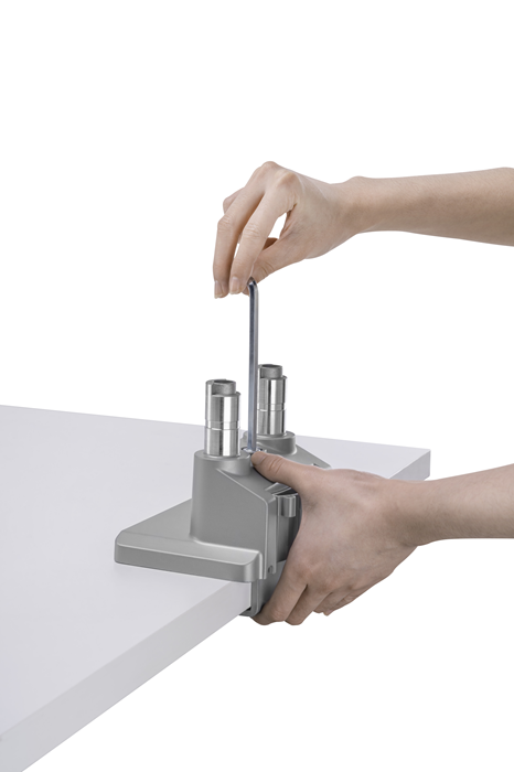 —Installs from Top Side: installs entirely from above the desk surface
