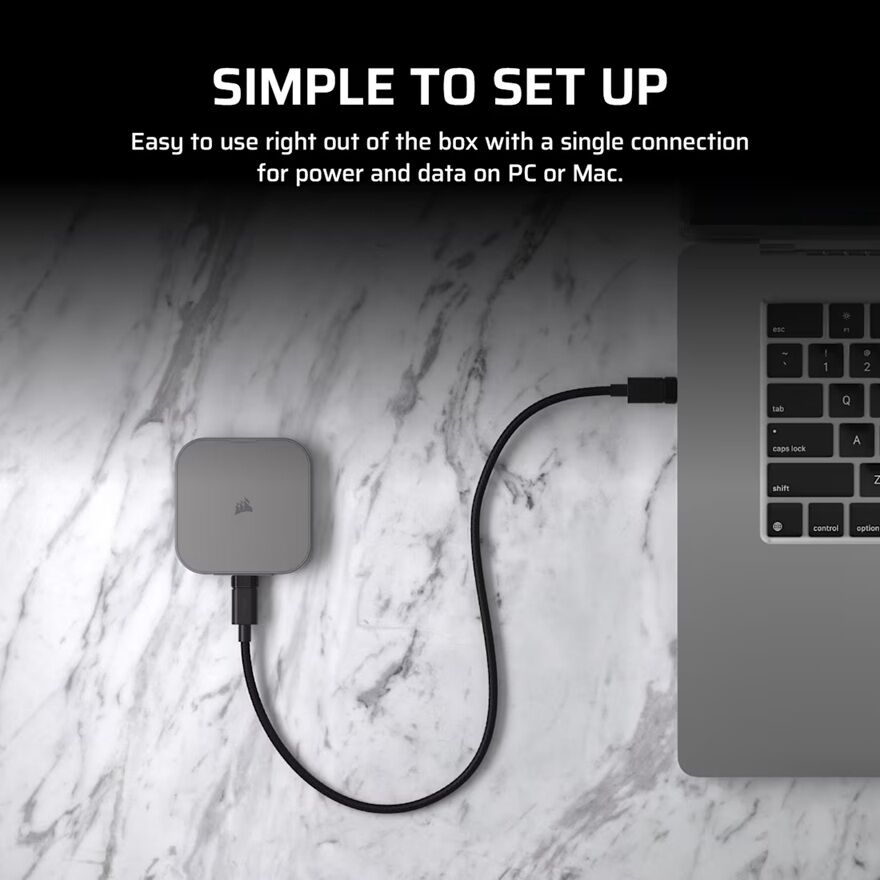 Corsair EX400U 2TB USB4 External SSD: USB4 40Gb, 4000MB s read, 3600MB s write, 0 degreeC70 degreeC, 1,500G shock, Gunmetal, 0.092kg, USB-C, Win Mac