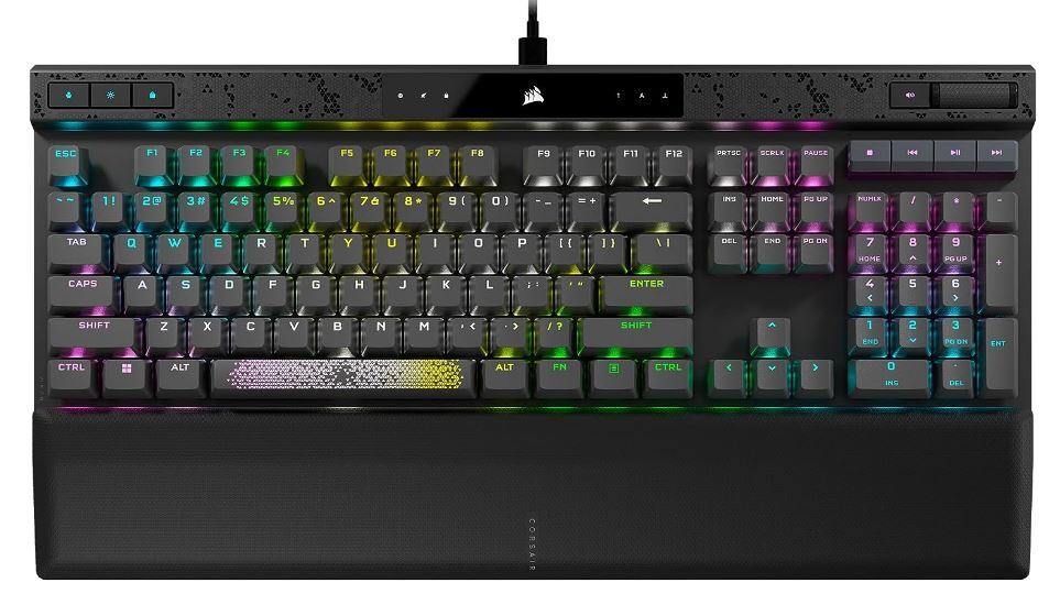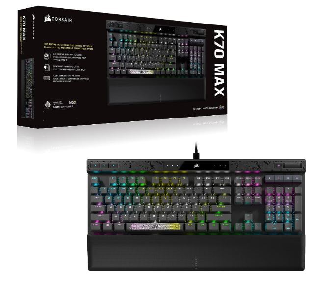 CORSAIR K70 MAX Black MGX White RGB White PBT Keycaps. Adjustable Magnetic Keys Palm Rest Bright LED Media Controls ICUE Keyboard