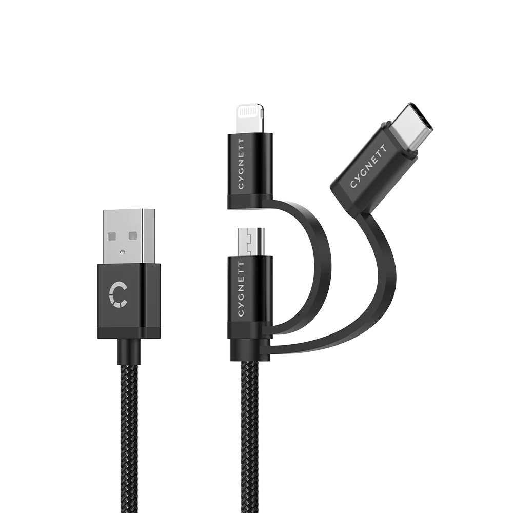 Cygnett 3-in-1 (USB-A to Lightning + USB-C + Micro-USB) Cable (1M) - Black (CY3571COCAB)