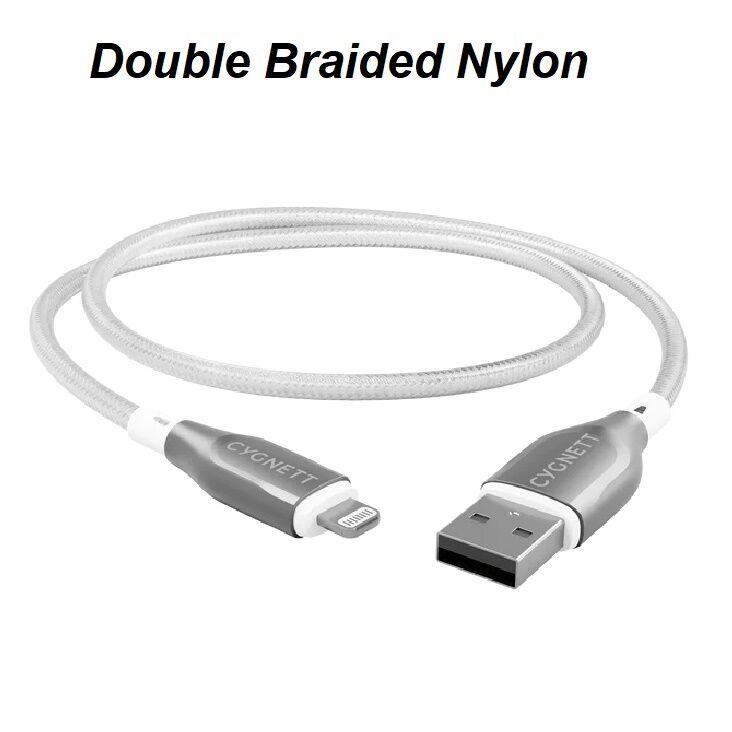 Cygnett Armoured Braided Lightning to USB-A (2.0) (1M) Cable - White (CY4659PCCAL), 2.5A 12W, 480Mbps, Turbo Charge, Apple iPhone, 5 Years Warranty