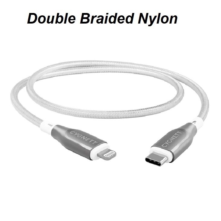 Cygnett Armoured Lightning to USB-C (2.0) Cable (1M) -White(CY4668PCCCL),30W,Braided, 480Mbps Transfer, Fast Charge iPhone iPad, MFi, 5 Years Warranty
