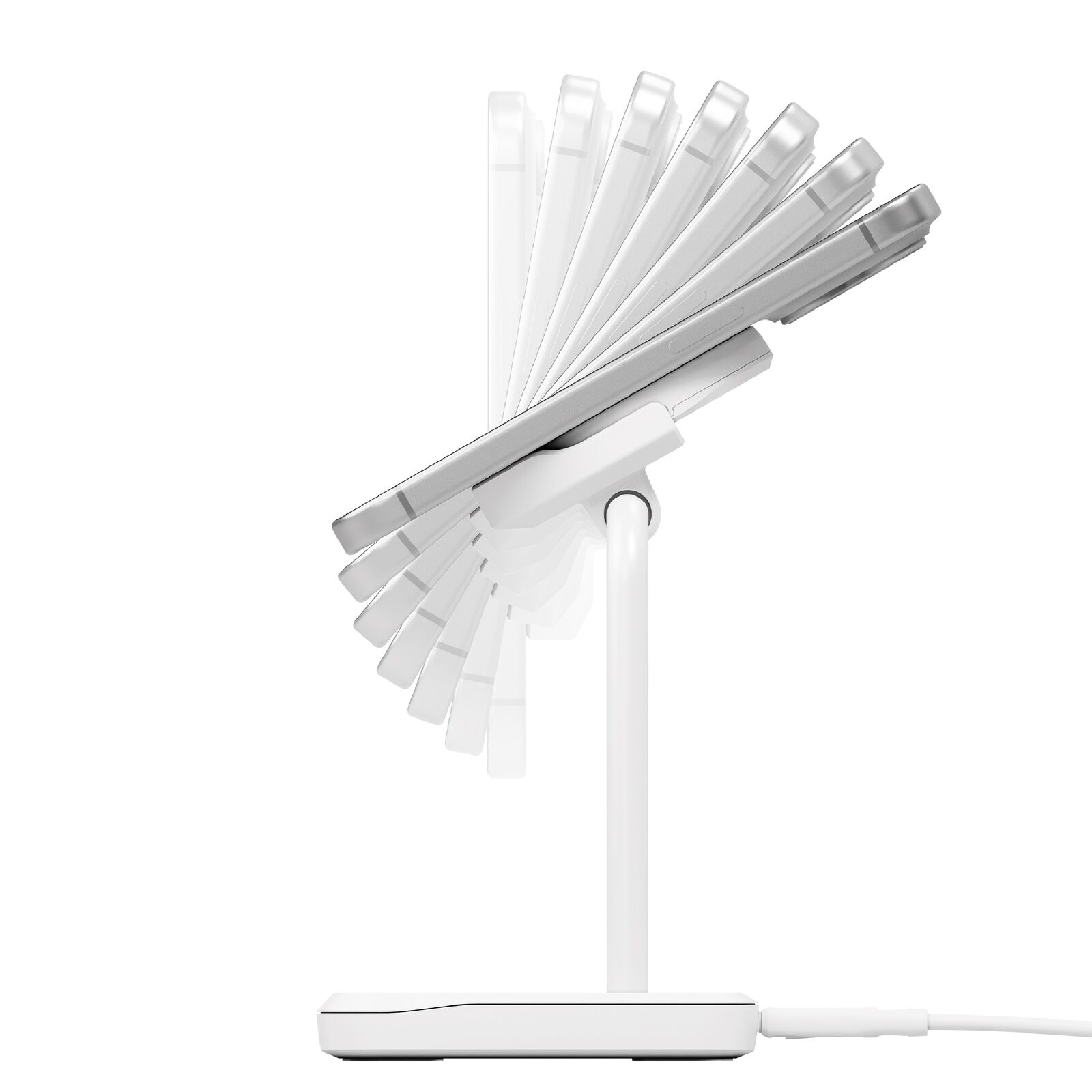The perfect addition to any home or office setup, the Qi2.0 charging station offers dual wireless charging zones for your iPhone, AirPods, or any Qi2.0 compatible device. With up 15W of fast wireless charging, it powers your device quickly, while the weighted base and adjustable multi-angle phone mount let you text, browse or join conference calls effortlessly - all while staying charged.