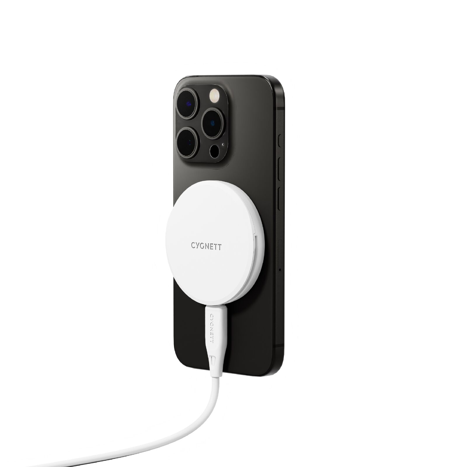 Cygnett ChargePuck Qi2 15W Fast Wireless Charger -White(CY5062CCRGP),Compact Lightweight, 1.2M USB-C Cable,Perfect for Travel,2 Years Warranty