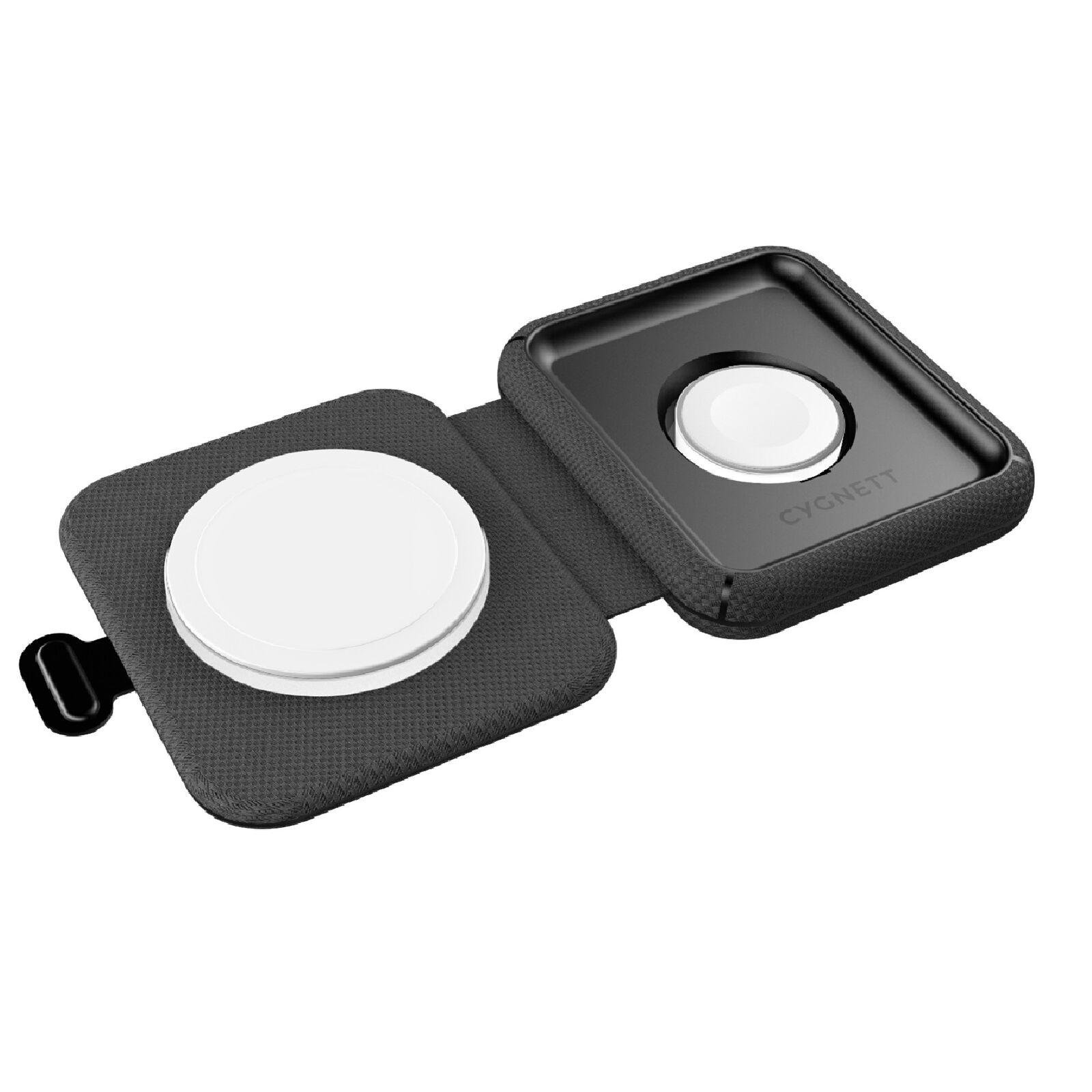 Cygnett MagTravel Qi2.0 2-in-1 Wireless Charger - Black (CY5138WIRDE), 1.2M USB-C Cable,15W, Compact and lightweight, 2 Years Warranty