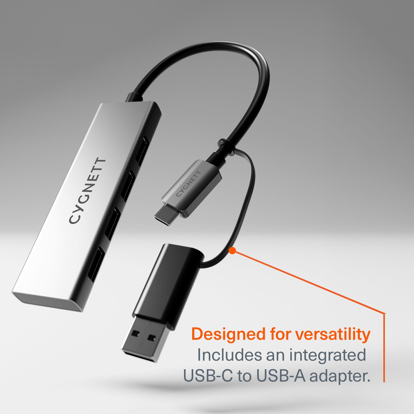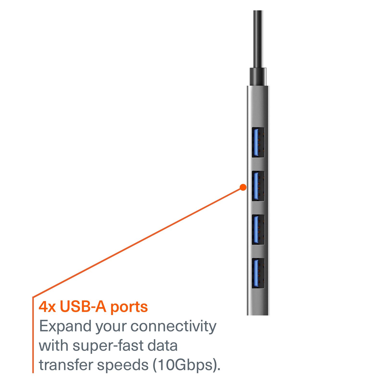 Cygnett Unite 4-in-1 USB-C to USB-A Hub- White(CY5388CYHUB),4x USB-A,10GBps Transfer,Aluminium outershell,USB-C to USB-A Adapter,2Years Warranty