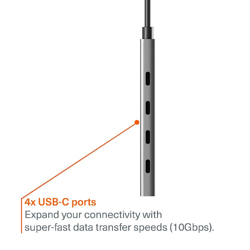 Cygnett Unite 4-in-1 USB-C to USB-C Hub- White(CY5390CYHUB)4x USB-C Ports,10Gbps Transfer,Aluminium Outer Shell,15cm cable, 2-Year Warranty