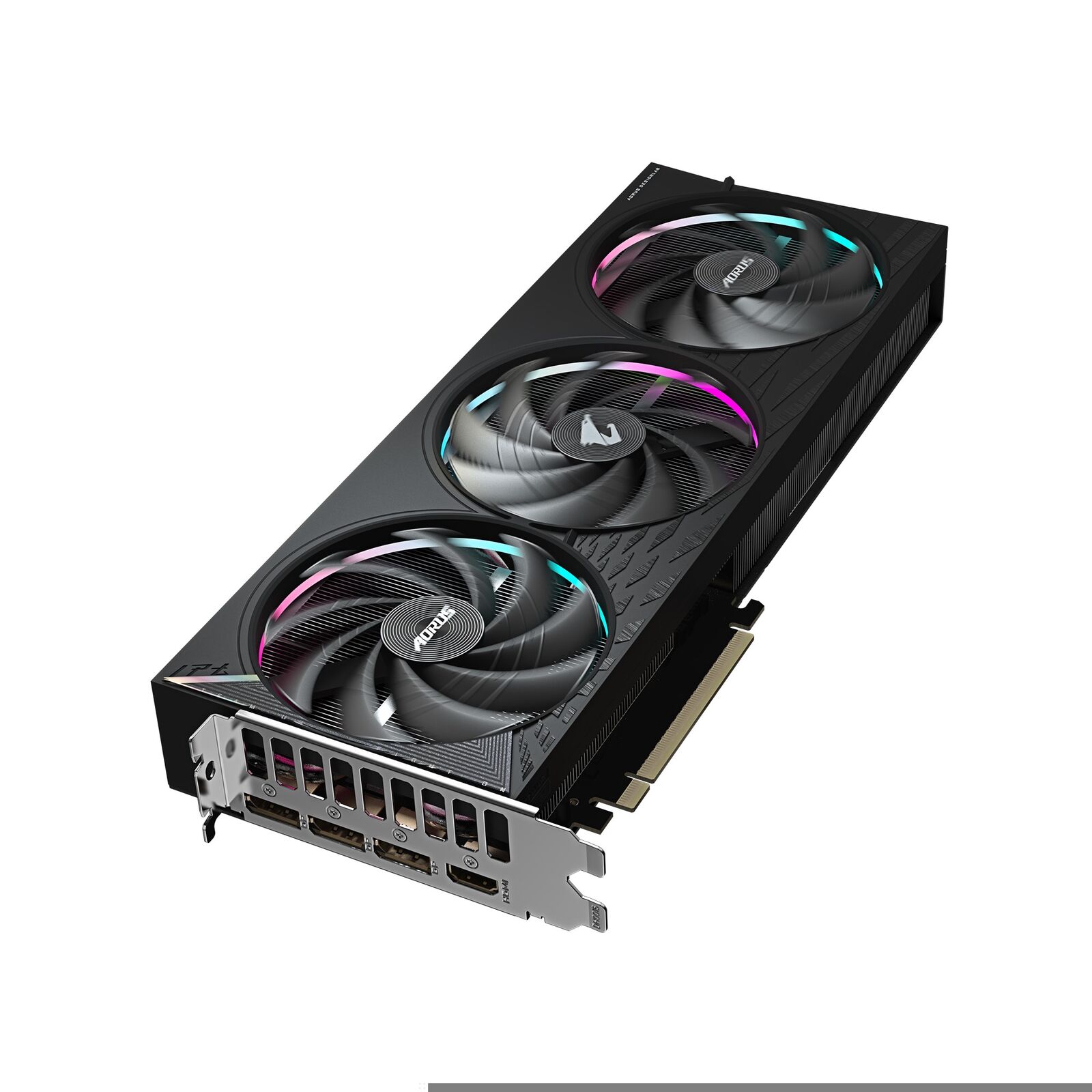 The AORUS logo on the side utilizes an overlay design to create a gradient effect, enriching the visual layers while also presenting a dynamic and vibrant aesthetic.