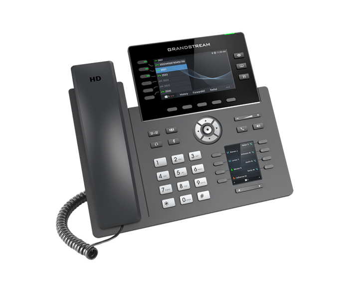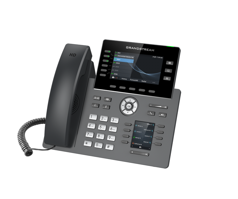 The GRP2616 is a high-end carrier-grade IP phone designed with zero-touch provisioning for mass deployment and easy management. It supports 6 lines and 6 SIP accounts while featuring a sleek design and a suite of next-generation features including integrated Wi-Fi, Bluetooth support, 48 virtual multi-purpose keys (MPKs), dual Gigabit ports and more. This device features a 4.3 inch color LCD screen with swappable face plates to allow for easy logo customization and an additional 2.4 inch display screen. The GRP series includes carrier-grade security features to provide enterprise-level security, including secure boot, dual firmware images and encrypted data storage. For cloud provisioning and centralized management, the GRP2616 is supported by Grandstream’s Device Management System (GDMS), which provides a centralized interface to configure, provision, manage and monitor deployments of Grandstream endpoints. Built for the needs of busy desktop workers and designed for easy deployment by enterprises, service providers and other high-volume markets, the GRP2616 offers an easy-to-use and easy-to-deploy voice platform.