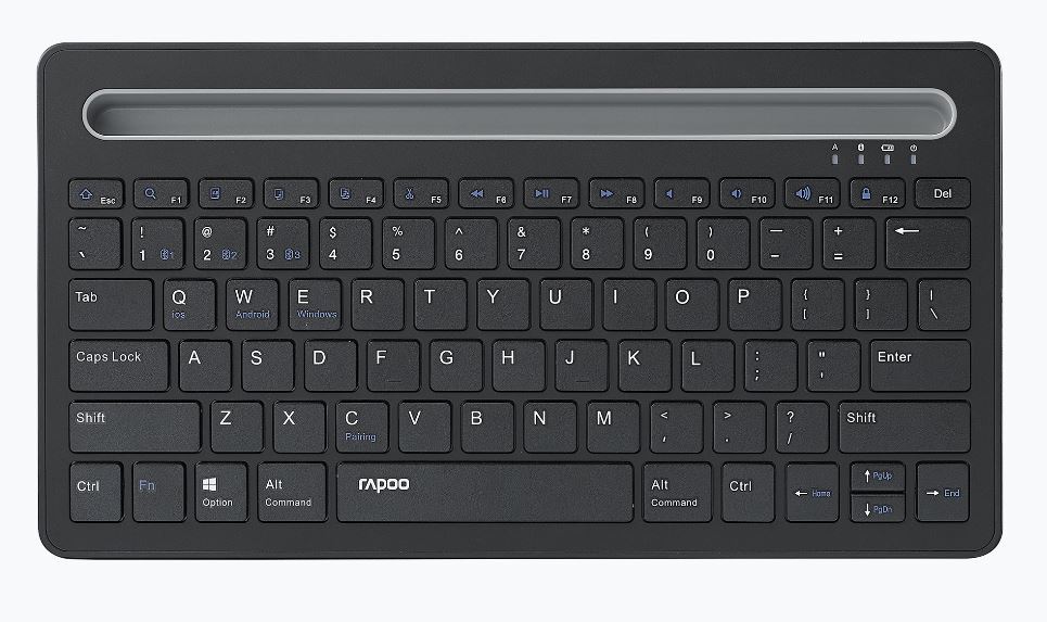 RAPOO XK100 Bluetooth Keyboard Integrated card slot stand design Compatible with Windows®, Android, Mac and IOS systems Intelligently switch among multiple devices Rechargeable lithium battery Scissor key structure Bluetooth 3.0 wireless connection