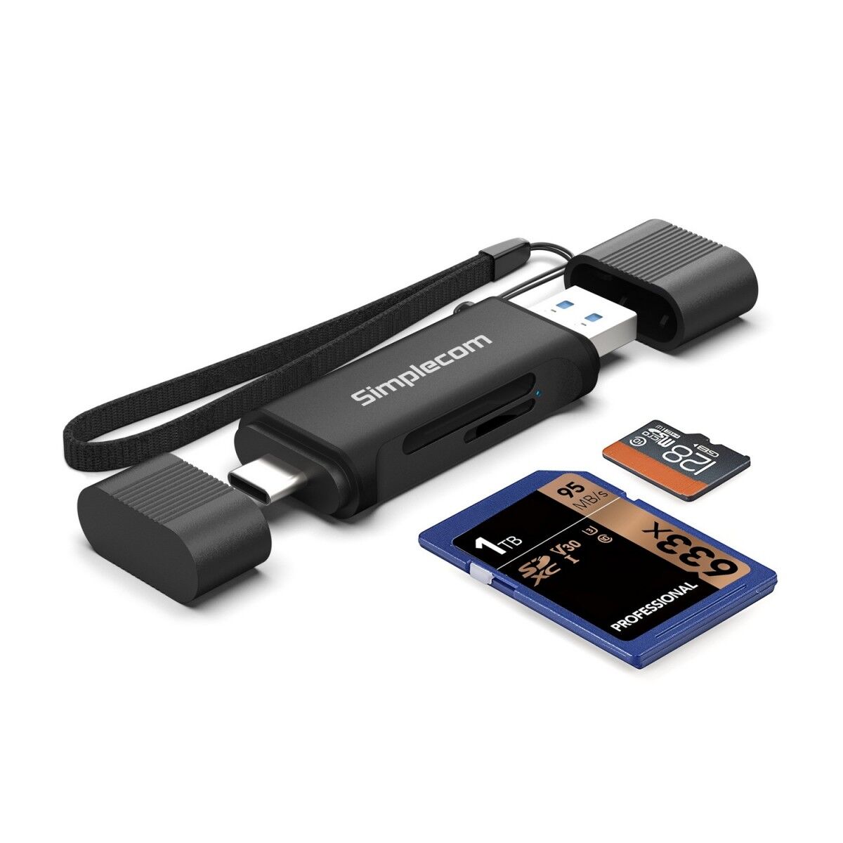 Simplecom CR402B SuperSpeed USB-C and USB-A Dual Slot Card Reader for SD MicroSD USB 3.2 Gen 1