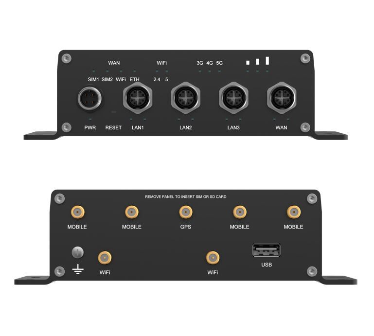 The ATRM50 is a rugged 5G router built for transportation, featuring 4 x M12 Gigabit Ethernet ports and M12 power input for durable, secure connections. It delivers ultra-high cellular speeds up to 3.4 Gbps and supports dual SIM with eSIM„ for seamless failover. Certified to EN 45545-2 and EN 50155 standards, the ATRM50 is engineered to meet the rigorous safety and reliability requirements of railway systems”while also being a strong fit for other demanding transportation environments. The router comes with GNSS, an integrated mounting bracket, and is compatible with RMS for efficient on-site and remote management.