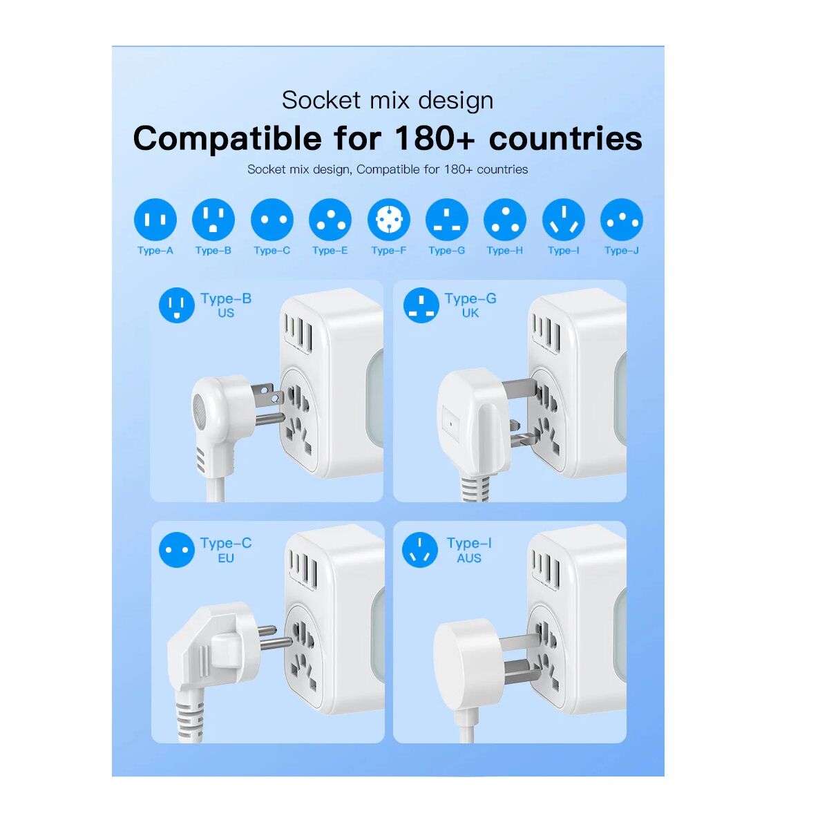 h3USP Australian Inbound Travel Adapter 2 USB-A 2 USB-C AC Socket h3