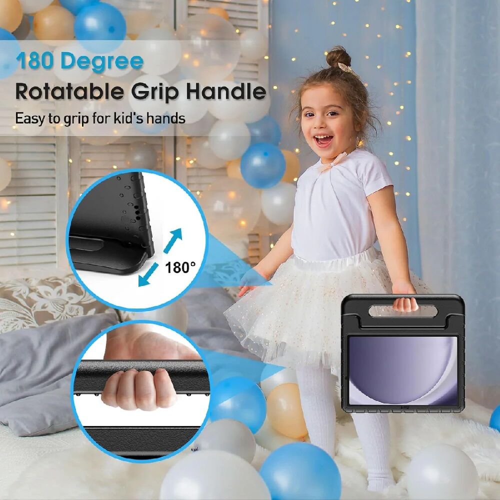 USP Samsung Galaxy Tab A9 (11 ft) Kid Friendly Case Black - Shockproof, Raised Edges, 180 degree Rotation, Portable Lightweight, Perfect for Kid